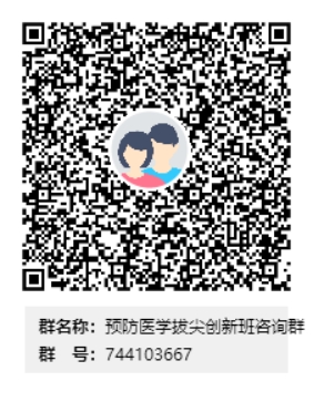 请于5月6日晚18点前将报名表和相关证明材料发送至邮箱xufeima@sdu.edu.cn(邮件以“姓名+学院+预防医学实验班”命名)。报名同学请加入QQ群(群号:744103667)进行详细咨询,后续通知也将在群里发布。招生小组将根据报名材料进行审核并择优确定面试人选,面试重点考查专业兴趣、相关学科水平和综合素质。