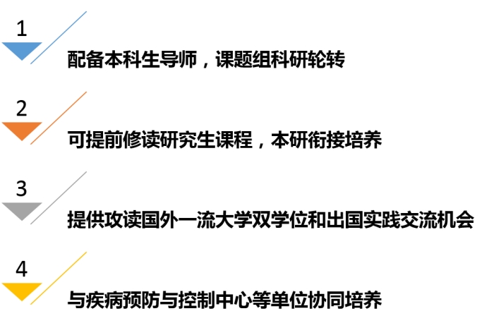 创新实验班面向国家公共卫生和健康安全重大需求,全面落实立德树人根本任务,培养具有公共卫生创新能力和全球健康治理能力的拔尖创新人才,为培养一锤定音的领军人才和高水平原始创新人才奠定坚实基础。
