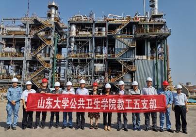 教工五支部从环境卫生和职业健康的专业角度参观了临淄某化工企业,观摩生产现场、了解生产工艺,调研环境污染状况及职业病危害现状,从生产工艺、原材料,职工健康监护、职业病预防控制措施、应急管理、废气、废水处理等角度与企业主管人员进行了沟通交流。